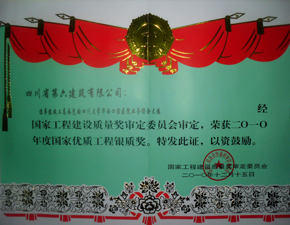 四川省優(yōu)質(zhì)工程“天府杯”金獎(jiǎng)32項(xiàng)、銀獎(jiǎng)16項(xiàng)