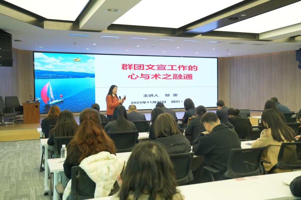 本次培訓(xùn)特邀華西集團(tuán)黨委委員、職工董事、工會(huì)主席楊海軍親臨授課。楊海軍從企業(yè)文化的基本概念切入,回顧了華西75年發(fā)展史和企業(yè)文化演進(jìn)過程,系統(tǒng)闡述了優(yōu)秀文化在推動(dòng)企業(yè)高質(zhì)量發(fā)展中的引領(lǐng)作用。談及青年意識(shí)形態(tài)工作,楊海軍聚焦當(dāng)代青年的價(jià)值觀主要特征與現(xiàn)實(shí)挑戰(zhàn),引導(dǎo)青年摒棄“佛系”“躺平”心態(tài),將個(gè)人理想融入企業(yè)發(fā)展全局,在崗位上奮發(fā)有為、建功立業(yè)。 整場(chǎng)授課立意高遠(yuǎn)、內(nèi)容扎實(shí)、情感真摯,兼具理論高度、實(shí)踐深度與人文溫度,為大家呈現(xiàn)了一場(chǎng)聚焦文化傳承與使命擔(dān)當(dāng)?shù)乃枷胧⒀纭?/span> 二、《群團(tuán)文宣工作的心與術(shù)之融通》