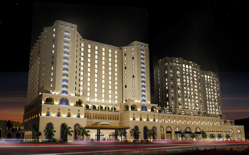 一二段酒店區(qū)的兩棟塔樓結(jié)構(gòu)封頂!